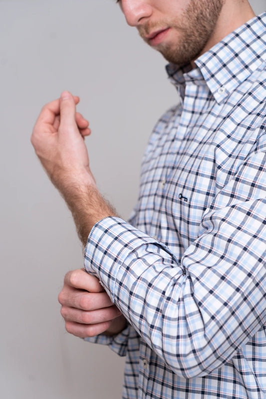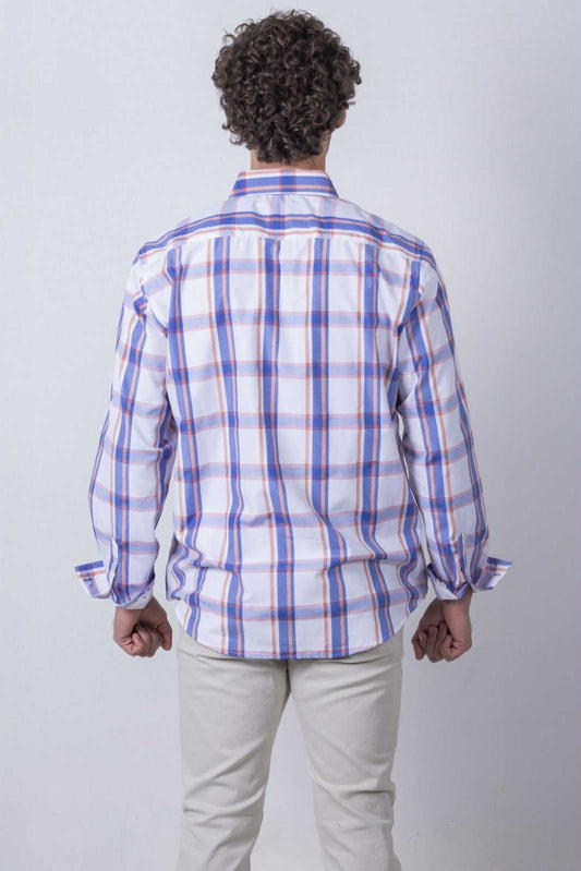 Camisa Oxford Cuadro Azul Cielo Manga Larga