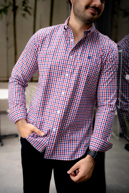 Camisa de Manga Larga Mini Cuadros Rojo, Azul FOR3266
