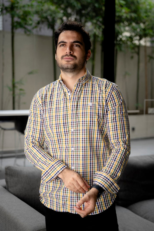 Camisa Oxford Cuadro Ambar con Negro