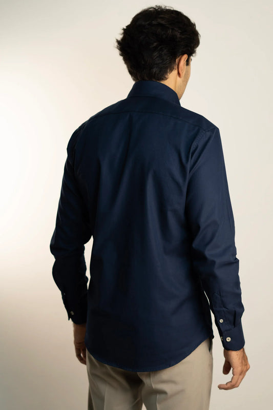 Camisa Azul Marino Algodón Manga Larga