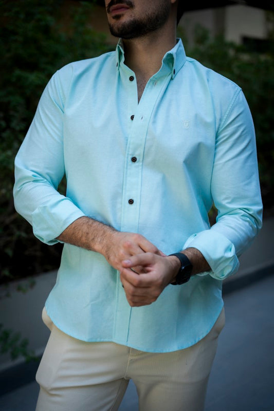 Camisa de Manga Larga Verde Pistache Oxford FOR 3304