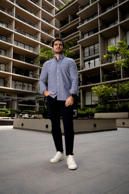 Camisa de Manga Larga Mini Cuadros Azul FOR3270