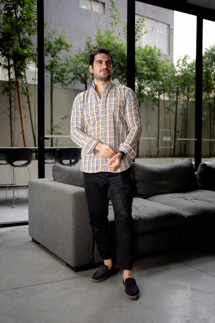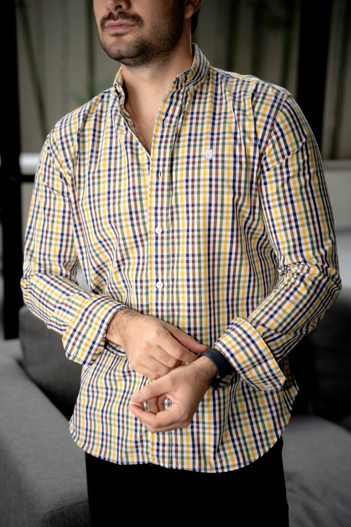 Camisa de Manga Larga Mini Cuadros Multicolor Amarillo FOR3274
