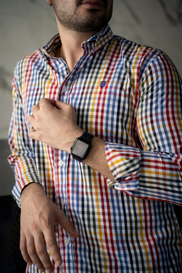 Camisa de Manga Larga Mini Cuadros Multicolor FOR3245