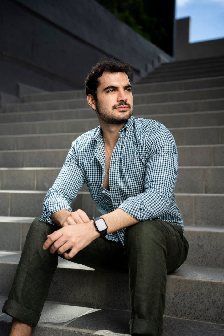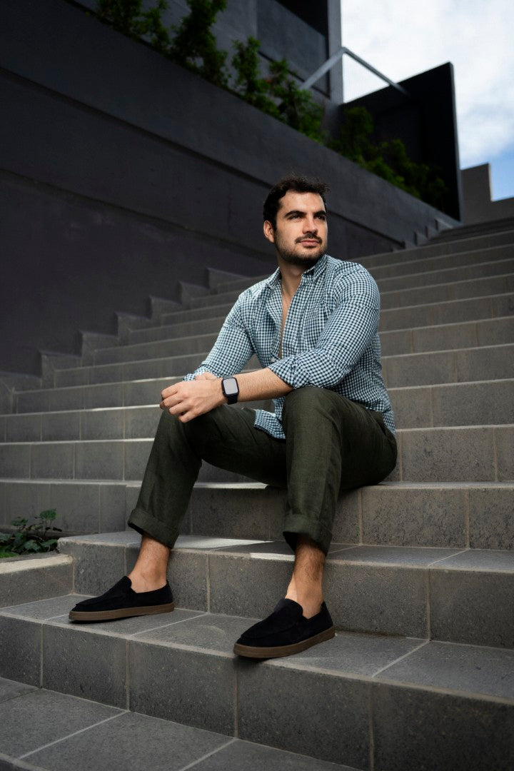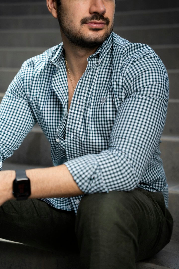 Camisa de Manga Larga Minicuadro Verde, Blanco, Azul FOR3239